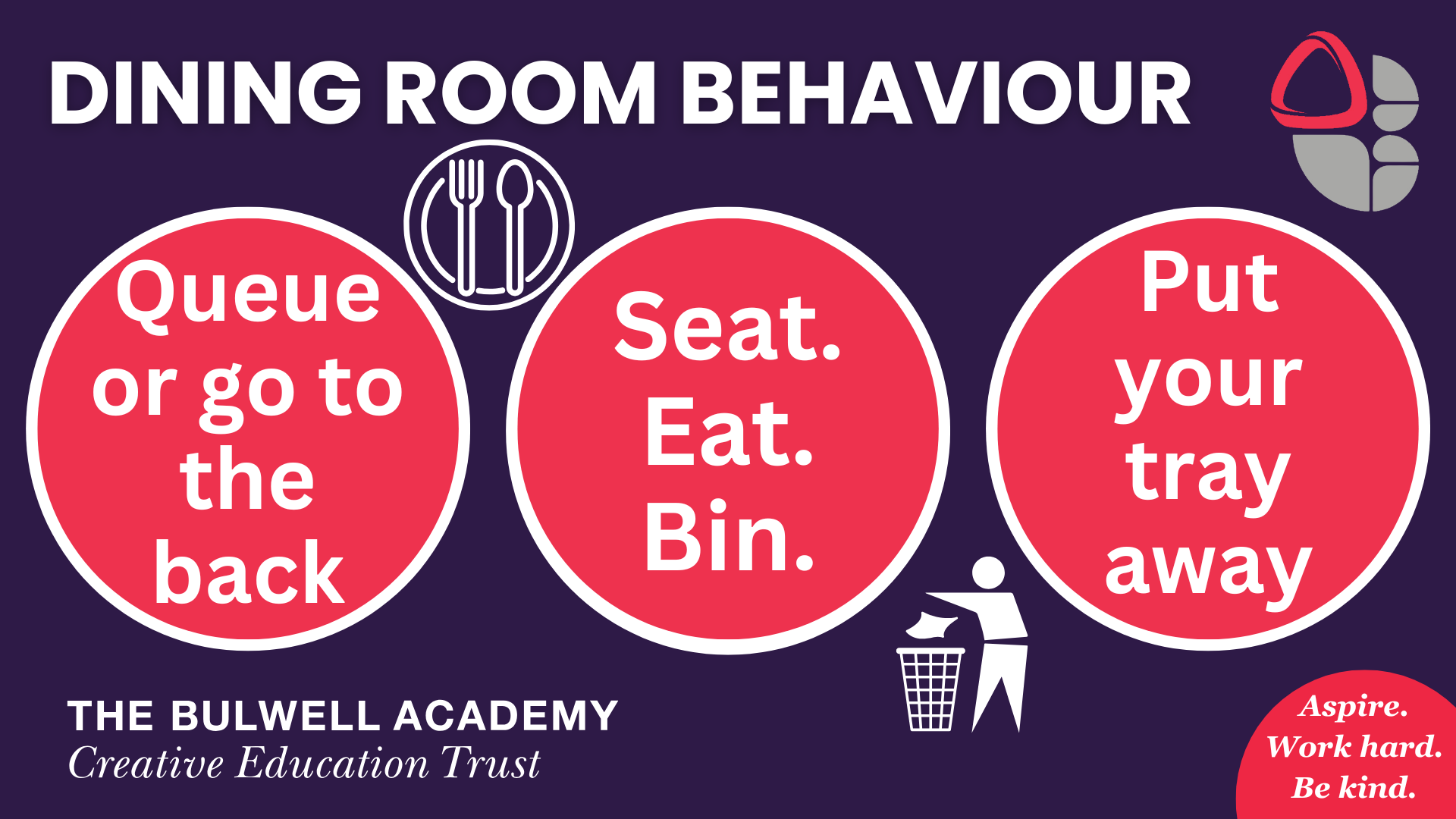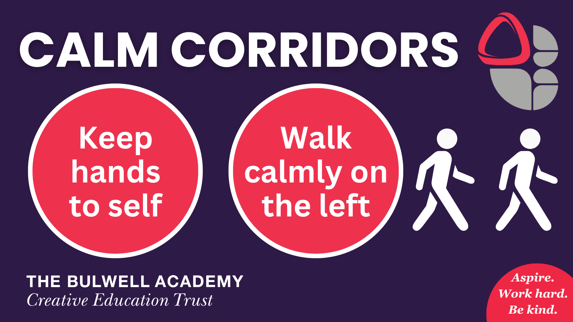 The behaviour curriculum promotes a positive school culture centred on our core values: Aspire, Work Hard, Be Kind.
