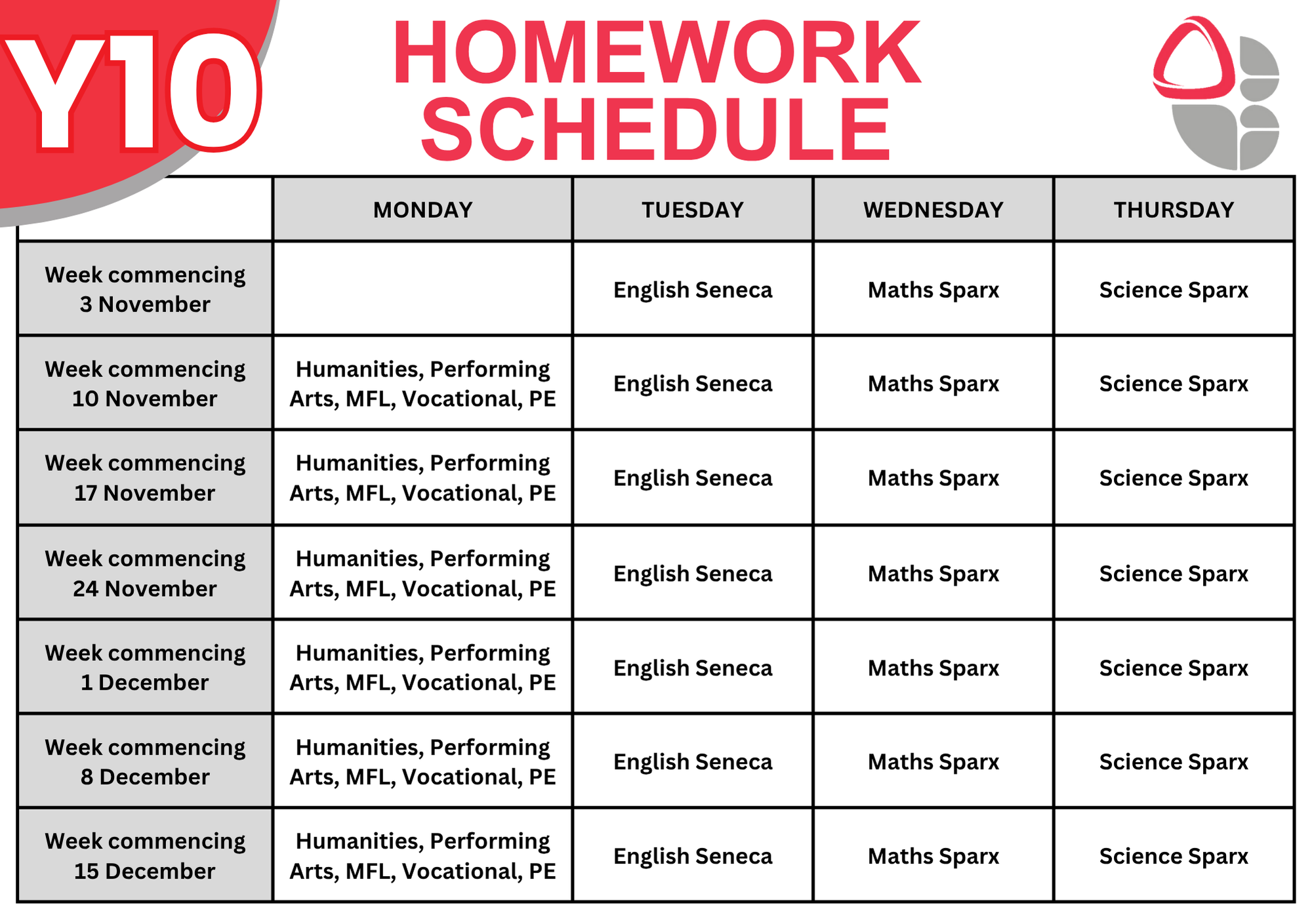 At The Bulwell Academy, regular homework is provided to consolidate learning that has taken place in lessons and to develop fluency in all areas. Click on the images to view the schedule of homework for your child’s year group.