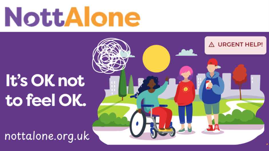 Visit nottalone.org.uk for local mental health advice and help for young people in Notts, all in one place.