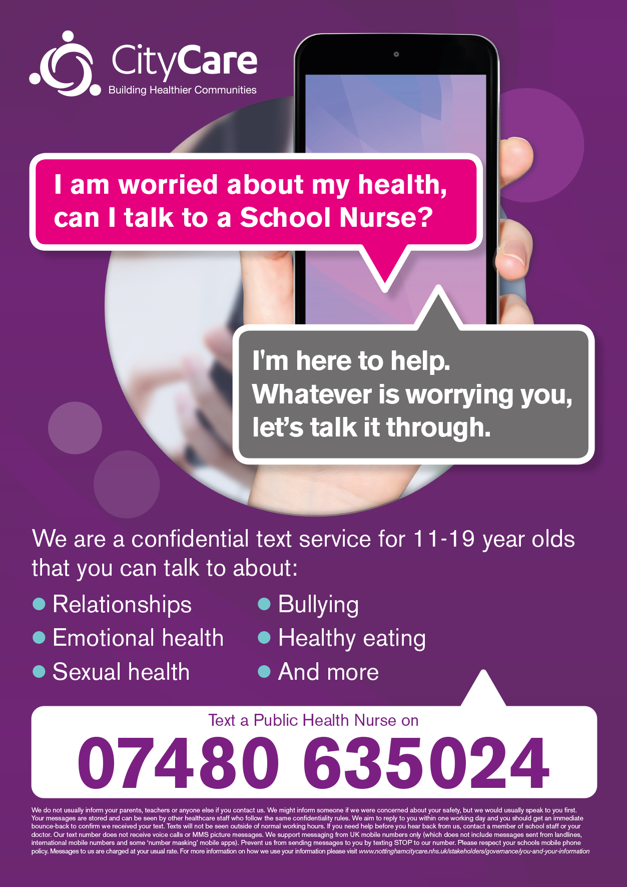 - Talk by text to a Public Health Nurse about your health concerns or anything that is worrying you